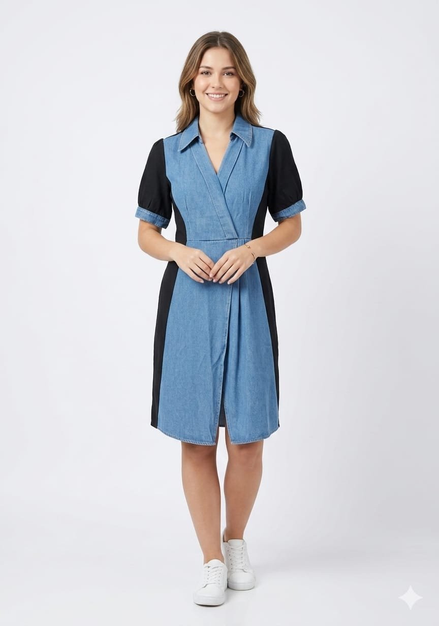 -Black Denim Wrap Dress