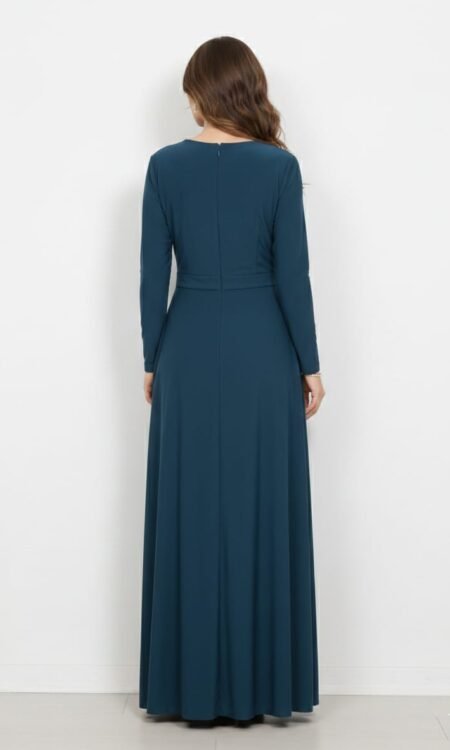 - Fabric: The material appears to be a mid-weight stretch crepe or ponte knit, providing a clean, matte finish that holds its shape well.