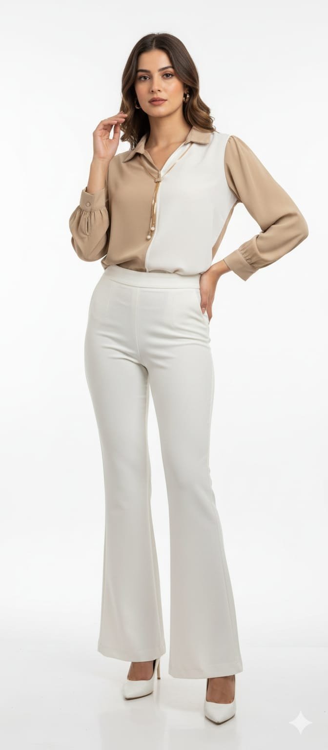 Be the first to review “Colour-Block Pattern Satin Shirt (Beige & White)”