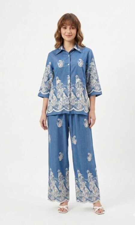 Asymmetrical Design: The front of the top is tailored with a unique overlapping asymmetrical hemline, adding a contemporary twist to the classic button-down style.
