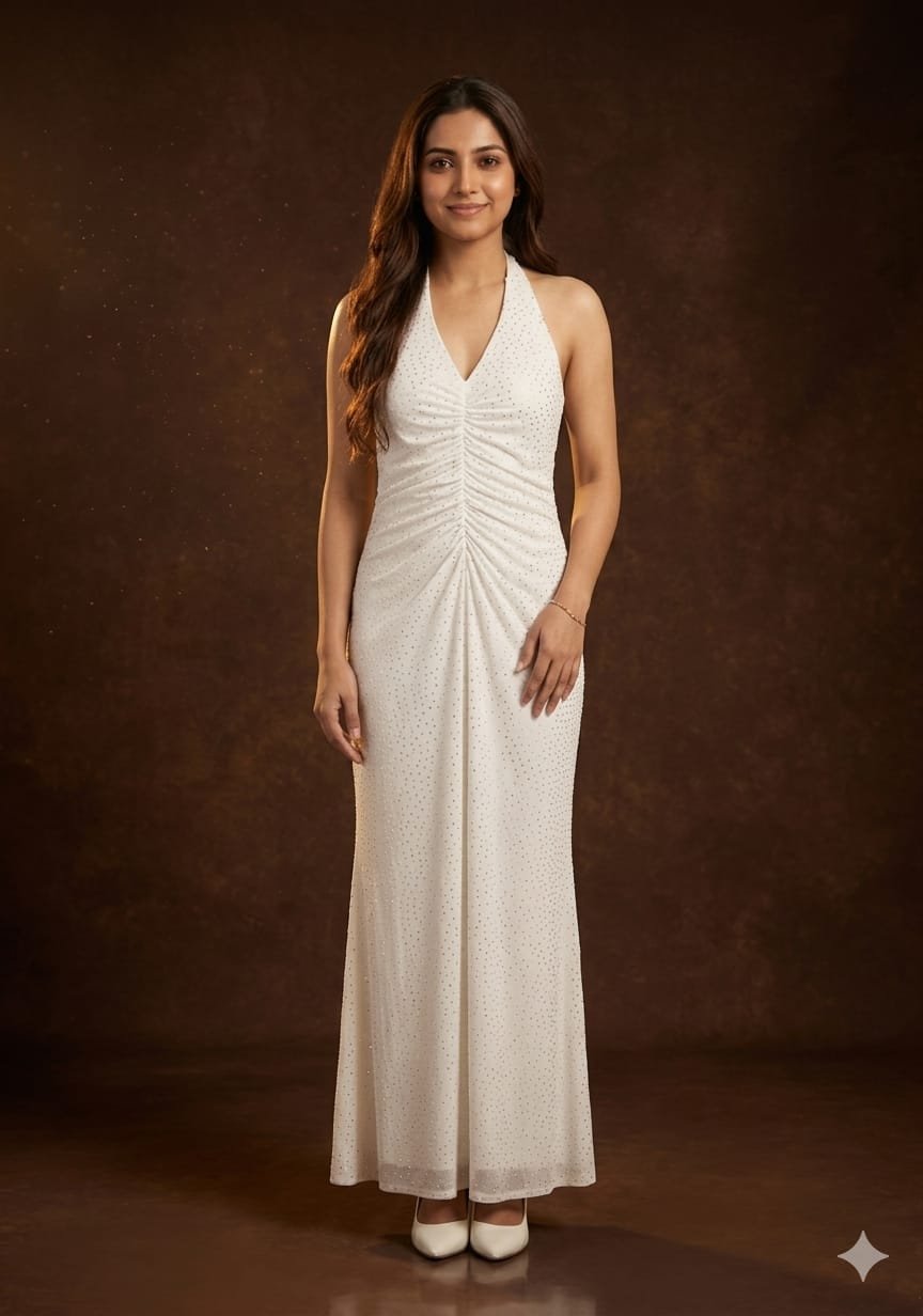 glittering white halter gown