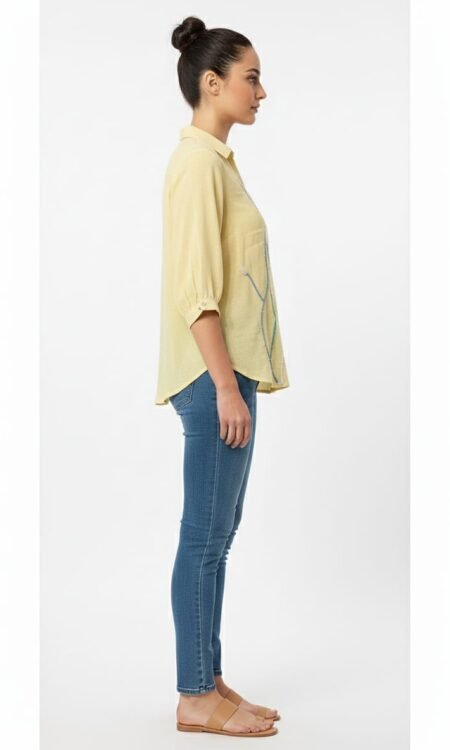 Silhouette: The garment has wide, batwing sleeves and a draped,